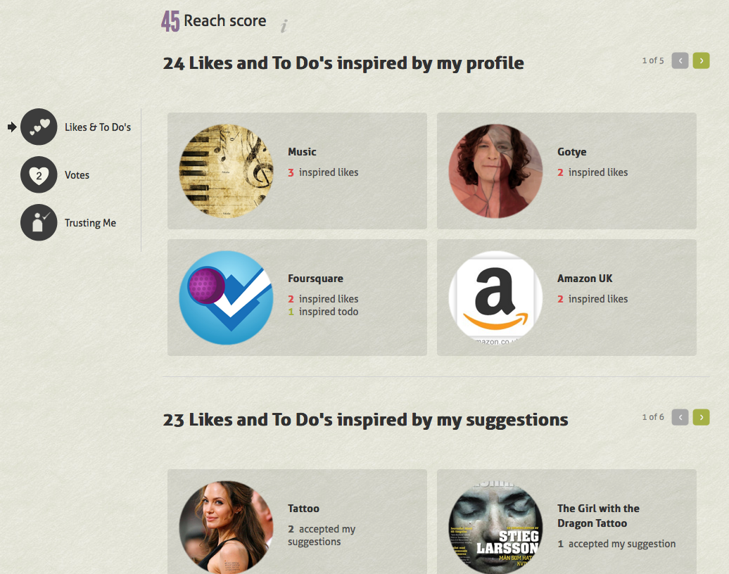 As you might know, we recently released the CircleMe Reach Score. Until today, the Reach Score allowed you to find out which categories you were the most influential in and how many people trusted you. From today, you will also be able to find out exactly what likes and To Do’s were influenced by your profile and also by your suggestions.