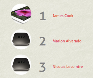 The top user will get a new iPad, the second and third users will get an Apple TV and the rest of the top 10 users will get some fab CircleMe T-Shirts. Wondering who made it to the top 3 places? These are James Cook from the UK, Marlon Alvarado from Guatemala, and Nicolas Lecointre from France!