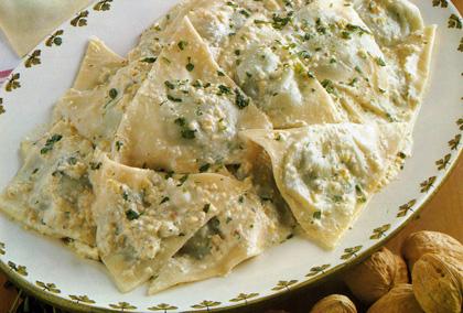 This walnut sauce is the perfect topping for Italian pasta Pansotti.